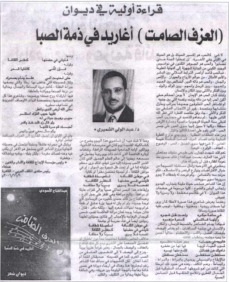 قراءة أولية في ديوان (العزف الصامت ) أغاريد في ذمة الصبا