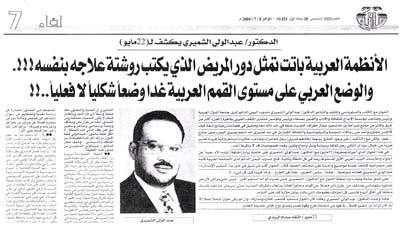 الأنظمة العربية باتت تمثل دور المريض الذي يكتب روشتة علاجه بنفسه!!!.