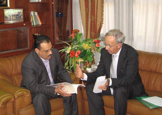 استقبل سعادة السفير الدكتور /عبد الولي الشميري سفير الجمهورية اليمنية لدى جمهورية مصر العربية ومندوبها الدائم لدى جامعة الدول العربية صباح هذا اليوم 20-11-2006 بمكتبه سعادة السفير توري محمد بيت المال الأمين العام المساعد لجامعة الدول العربية مدير الصندوق العربي للمعونة الفنية للدول الأفريقية وبحث معه علاقات التعاون بين بلادنا والصندوق وسبل تطوير أداء وفاعلية الصندوق بما يخدم تعزيز العلاقات العربية الأفريقية كما تناول اللقاء أيضاً آخر المستجدات على الساحة العربية وتطوير العمل العربي المشترك ودور الجمهورية اليمنية في جهود تطوير واستقرار الدول الأفريقية واضطلاعها بهموم الدول الأفريقية على الضفة الغربية من البحر الأحمر والمحيط. |