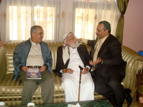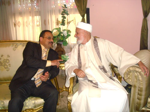 لقطة تضم السفير الشميري مع القاضي العلامة محمد بن إسماعيل الحجي رئيس مجلس القضاء الأسبق