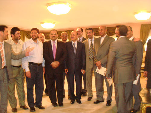 المسئولين والوزراء في الجمهورية اليمنية وجمهورية مصر العربية، استقبل الدكتور عبدالولي الشميري سفير اليمن بالقاهرة ومعالي اللواء حبيب العادلي وزير الداخلية بجمهورية مصر العربية، اللواء الدكتور رشاد العليمي بمطار القاهرة والوفد المرافق له، وتأتي هذه الزيارة في اطار تطوير العلاقات الامنية المشتركة بين الجمهورية اليمنية ومصر وتلبية كريمة من اللواء حبيب العادلي وزير الداخلية وقد أقامت السفارة اليمنية بالقاهرة على شرف الضيف الكبير، وعلى شرف معالى وزير التجارة الدكتور يحي يحي المتوكل الذي يرأس الوفد اليمني الموسع في المفاوضات الاستراتجية الموسعة في الاطار الثنائي لبحث تنفيذ البروتوكولات الموقع عليها والمبرمة بين البلدين في اطار اللجنة اليمنية المصرية المشتركة، حضر اللقاء عدد كبير من الدبلوماسيين وأعضاء الوفود. |
