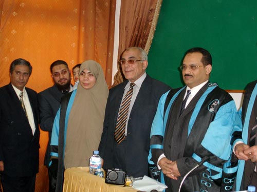 في يوم الاثنين 19/2/2006م وفي حشد علمي متميز قام سفير اليمن لدى مصر وجامعة الدول العربيه الأستاذ الدكتور عبد الولي الشميري، والأستاذ الدكتور محيي الدين عبد الحليم رئيس قسم الإعلام بجامعة الأزهر، والأستاذ الدكتور /حسن علي المحاضر في جامعة المنيا وأستاذ الإعلام فيها بمناقشة الأطروحة العلمية لنيل درجة الدكتوراه للباحثه المصرية / حسناء سعد عبد السميع وعنوانها: الخطاب الديني في القنوات الفضائية العربية ومدى فاعليتها في الدفاع عن الهوية العربية الإسلامية، وقد دام النقاش 3 ساعات نالت الباحثة حسناء بأطروحتها درجة الدكتوراة بتقدير ممتاز . |