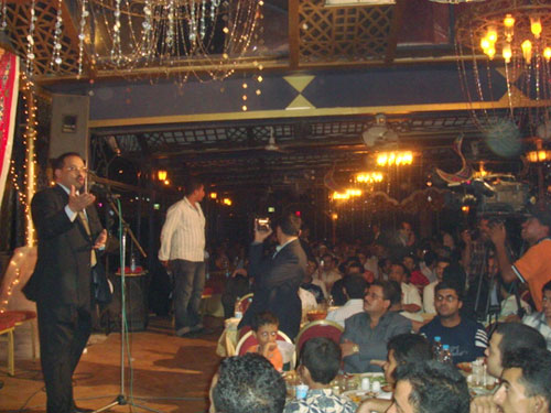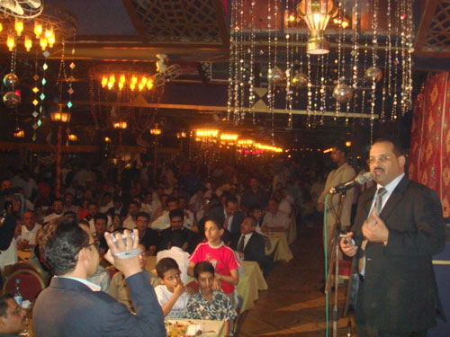 وأكد الشميري خلال حفل الافطار الجماعي الذي اقيم امس بباخرة "السرايا" أكبر البواخر وأفخمها في مصر في الحفل الذي شهدة أربعة آلاف من اليمنيين المقيمين بمصر من طلاب وجالية مقيمة، أن الرئيس صالح يقود الآن نهضة تنموية وعلينا نحن أبناء اليمن المقيمين بالخارج أن نجتهد حتى نشارك بسواعدنا وبعقولنا وعلينا ان نكون عند حسن الظن وان نجتهد حتى نشارك أبناءنا واخوتنا وابنائنا وحكومتنا في الداخل في تلك النهضة التى تعود بالخير علي اليمن أرضاً وشعباً، وأكد الشميري خلال الحفل الذي أربك حالة المرور في العاصمة المصرية، على عمق العلاقات اليمنية المصرية في ظل القيادة الحكيمة لفخامة الرئيس علي عبدالله صالح وأخية فخامة الرئيس محمد حسني مبارك رئيس جمهورية مصر العربية مما يعكس حسن أواصر الإخاء بين الشعبين الشقيقين وبين البلدين ليشاركا في حضارة تليدة خالدة فريدة، يفنى الزمن ولا تبلى، مؤكداً بان ما تقوم به مصر من دعم لطلاب اليمن حتى اصبحوا أكبر جالية يمنية وأكبر دارسين ووافدين في جامعاتها المختلفة هو محل تقدير من قبل كل يمني. |