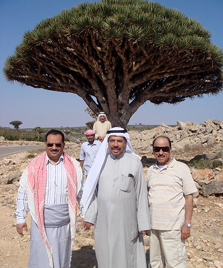 في زيارة سياحية مثيرة إلى جزيرة سقطرى الخلابة المعروفة بمحمية التراث العالمي، قام السفير د. عبدالولي الشميري ورجل الأعمال الكويتي عبدالعزيز بن سعود البابطين وعدد من رجال الأعمال الكويتيين وهم: