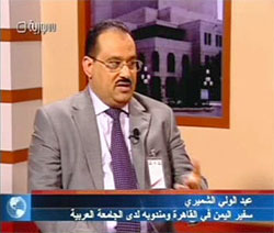 السفير د. عبدالولي الشميري خلال لقاءه التليفزيوني مع الفضائية السورية