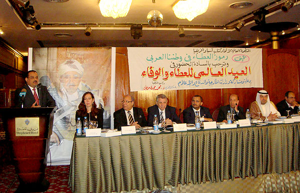 وقال "هو محل تقدير كبير منا ومن غيرنا كما إننا نعلم إن أصحاب العطاء لأمتهم العربية كثيرون وهناك أمثال عديدة لمن يستحقون التكريم غير ان إمكانيات المنظمة محدودة رغم جهودها التي تبذلها مشكورة لغرس وتعميق جذور الوفاء في مجتمعنا العربي الذي بدأ يفقد للأسف هذه المعاني النبيلة والقيم الرفيعة ومن هذا المنطلق فإني ادعوا أبناء أمتنا العربية والشخصيات الرسمية والشعبية والحكومات إلى دعم ومساندة هذه المنظمة لما تقوم به من دور إنساني رفيع يستحقون عليه الثناء والتقدير".