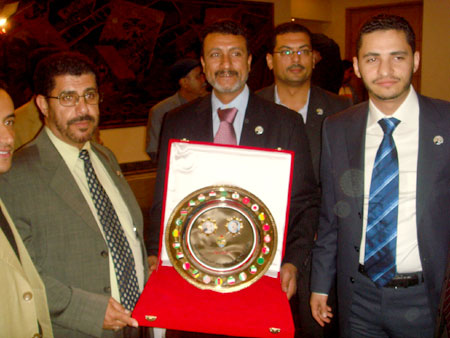 واستلم درع التكريم نائب رئيس البرلمان اليمني ونجل الفقيد الراحل الشيخ حمير بن الأحمر وسط حضور اعلامي ودبلوماسي وعربي كبير شهده فندق "شبرد " التاريخي بمشاركة عدد من أعضاء من مجلسي النواب والشورى فحظر الأستاذ عبد الواسع هائل سعيد وعيدروس النقيب ومذحج بن عبد الله الأحمر من مجلس النواب ويحي قحطان من مجلس الشورى.