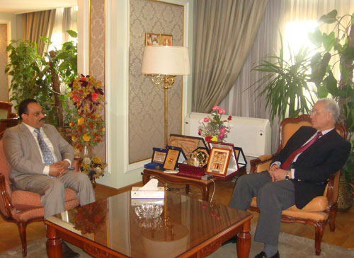 السفير د. عبدالولي الشميري مع وزير التعليم العالي المصري الدكتور هاني هلال