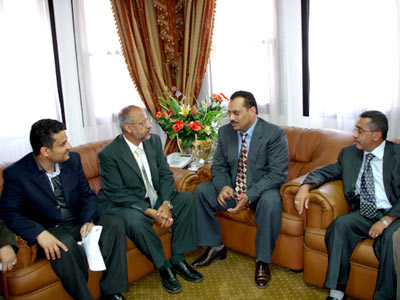 استقبل سعادة السفير الدكتور عبد الولي الشميري سفير اليمن بالقاهرة والمندوب الدائم لدى جامعة الدول العربية بمكتبه بدار السفارة معالي القاضي أحمد عبد الله الحجري محافظ محافظة تعزّ الذي يزور القاهرة وصاحبه في الزيارة المستشار يحيى الشرفي والملحق الإعلامي أ.خالد السودي والأخ إبراهيم السنحاني من مراسم رئاسة الجمهورية.