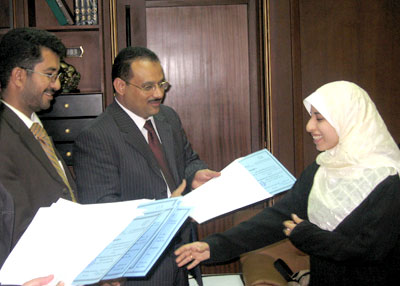 وقد خاطب السفير الشميري المدربين الشباب العرب المشاركين في الدورة ومنهم خمسة من الشباب والفتيات اليمنيين؛ مهنئا إياهم بالنجاح الذي تحقق من خلال الدورة وورش العمل التي تضمنتها، وقال: إنه مكسب كبير لكل بلادنا العربية أن ينضم الى ساحات النشاط أمثالكم ممن أخذ على عاتقه هم الوطن وبناءه وتقدمه داعيا إلى مزيد من التعاون الثقافي والابداعي والتنموي فيما بين الشباب العرب، والى أن يعكسوا كل ماتلقوه من خبرات ومهارات ومعارف في الواقع الاجتماعي .. من جانبه القى الأخ عبدالله عبدالإله سلام رئيس المركز الوطني اليمني للشباب كلمة قصيرة حيا من خلالها اهتمام السفير الشميري ورعايته لحفل ختام الدورة، مؤكدا أن مثل هذا الاهتمام من قبل سفير اليمن بالقاهرة، والذي لم يمنعه انشغاله بحضور عدد من الوزراء ولقاءاته المتواصلة بالسفارة والجامعة العربية من الاهتمام بمثل هذا النشاط غير الحكومي يمثل حافزاً إضافياً للمدربين لتحمل مسئولياتهم والعودة للوطن للمشاركة في التنمية الاجتماعية بكل حماس ورغبة صادقة في العطاء .. وقدم الخبير المصري أشرف محفوظ رئيس المؤسسة العربية للمحاماة والتدريب شرحاً عن مكونات الدورة الاقليمية للمدربين الشباب وأهدافها والبرامج التي سيعمل عليها المدربون الوطنيون بعد إتمامهم للدورة .. مقدما الشكر في ختام كلمته الى حكومة الجمهورية اليمنية ممثلة بسفيرها النشط الدكتور عبدالولي الشميري الذي يسبقه نشاطه وسمعته في كل أرجاء القاهرة قبل اللقاء به، واعتبر أن اهتمام السفير الشميري بمشاركين شباب يمثلون منظمات غير حكومية، وموافقته على رعاية الحفل الختامي للدورة الإقليمية العربية إنما يعكس بحق مدى الاهتمام الرسمي اليمني بإفساح المجال أمام مؤسسات المجتمع المدني للقيام بدورها الاجتماعي التنويري والتنموي .. وقد قام سعادة السفير ومعه رئيس المؤسسة العربية للمحاماة والتدريب ورئيس المركز الوطني اليمني للشباب بتوزيع الشهادات التقديرية على المدربين الخريجين اليمنيين والعرب.