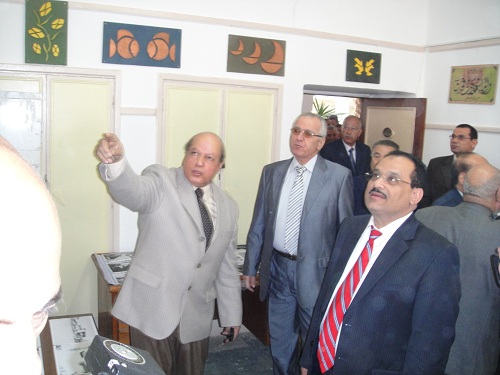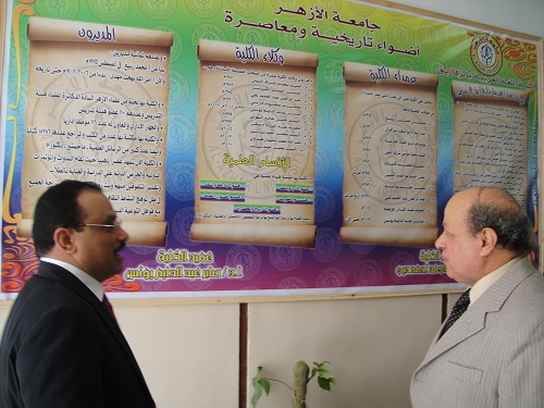 حيث كان في استقباله الأستاذ الدكتور صابر عبدالدائم عميد كلية اللغة العربية، ووكيل الكلية الأستاذ الدكتور محمد الديب ورؤساء الأقسام في الكلية وعدد من أساتذة الكلية وحشد كبير من طلاب الجامعة، وقد قام ضيف الشرف بقص شريط افتتاح معرض الكتاب المنعقد في الكلية على هامش المهرجان، ثم قام بجولة تعرف على أقسام الكلية وتوقيع الزيارة في السجل التأريخي للكلية.