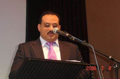 أعرب عن سعادتي لوجودي معكم اليوم في هذا الحفل لتكريم المتفوقين واتقدم بالشكر نيابة عن كل الحاضرين والغائبين للسيد الكسندر جون عمدة مدينة ددلي وكل مسئول في هذه المدينة لأني أرى تشجيعاً ودعماً مشكوراً للجالية المسلمة وخاصة اليمنية في هذه المدينة.