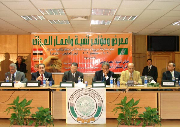وإعمار العراق بمقر جامعة الدول العربية وبحضور الامين العام للجامعة .